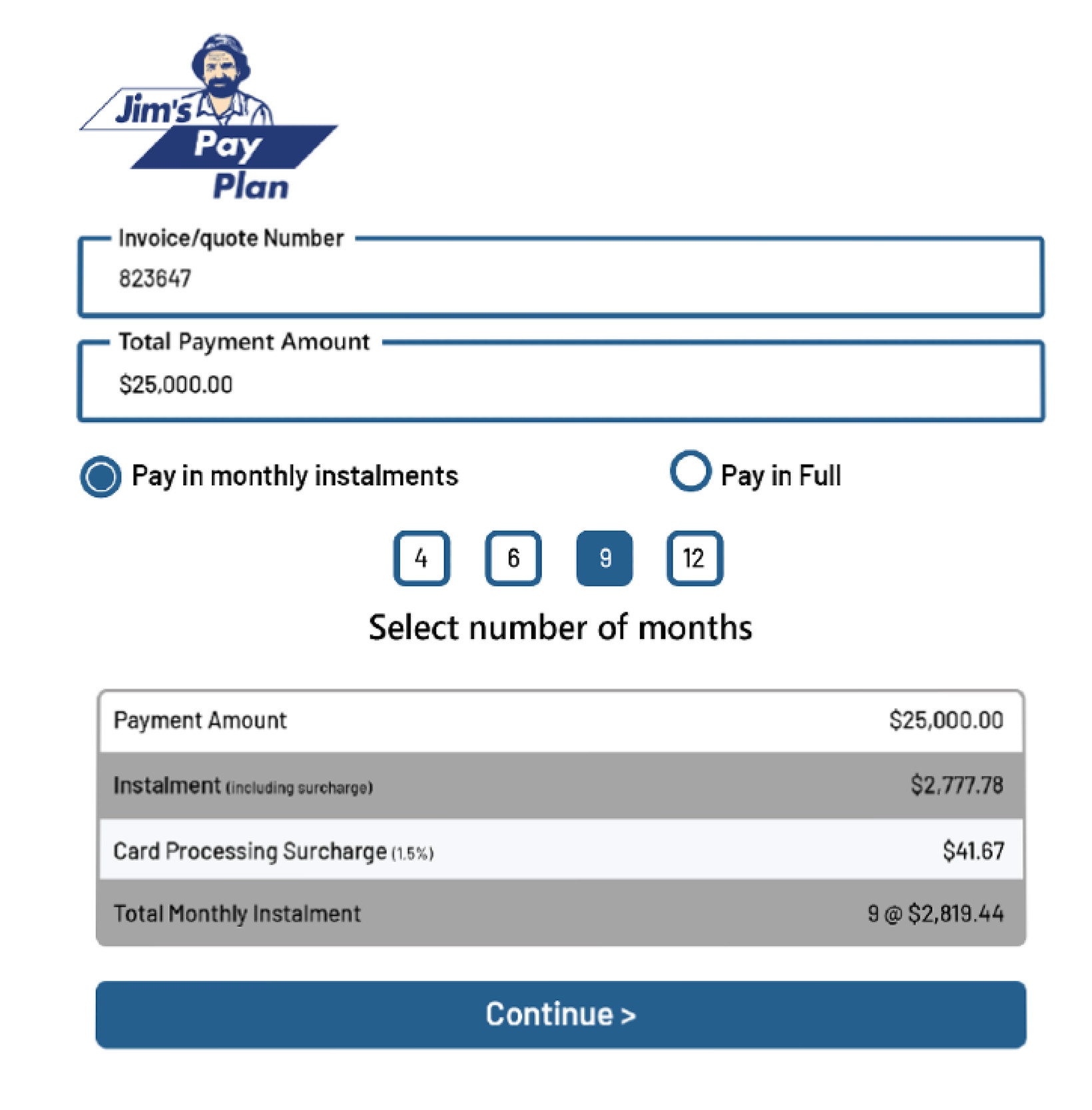 Pay over time with Jim’s Pay Plan